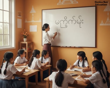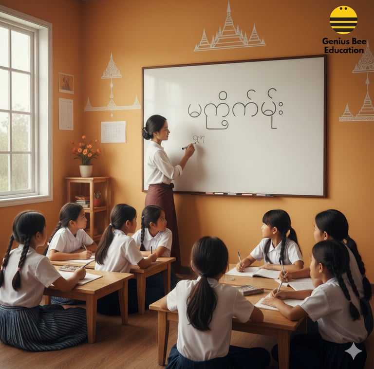 Our Myanmar Class helps children strengthen their connection to culture and language while improving literacy and expression. Through reading, writing, and storytelling, students learn proper spelling, pronunciation, and grammar in an enjoyable way. We also introduce them to classic folktales, poems, and local traditions to nurture appreciation for Myanmar’s rich heritage. Lessons are structured to make language learning exciting, using games and activities that promote creativity and curiosity. This class builds a solid language foundation while developing pride and love for their own culture.